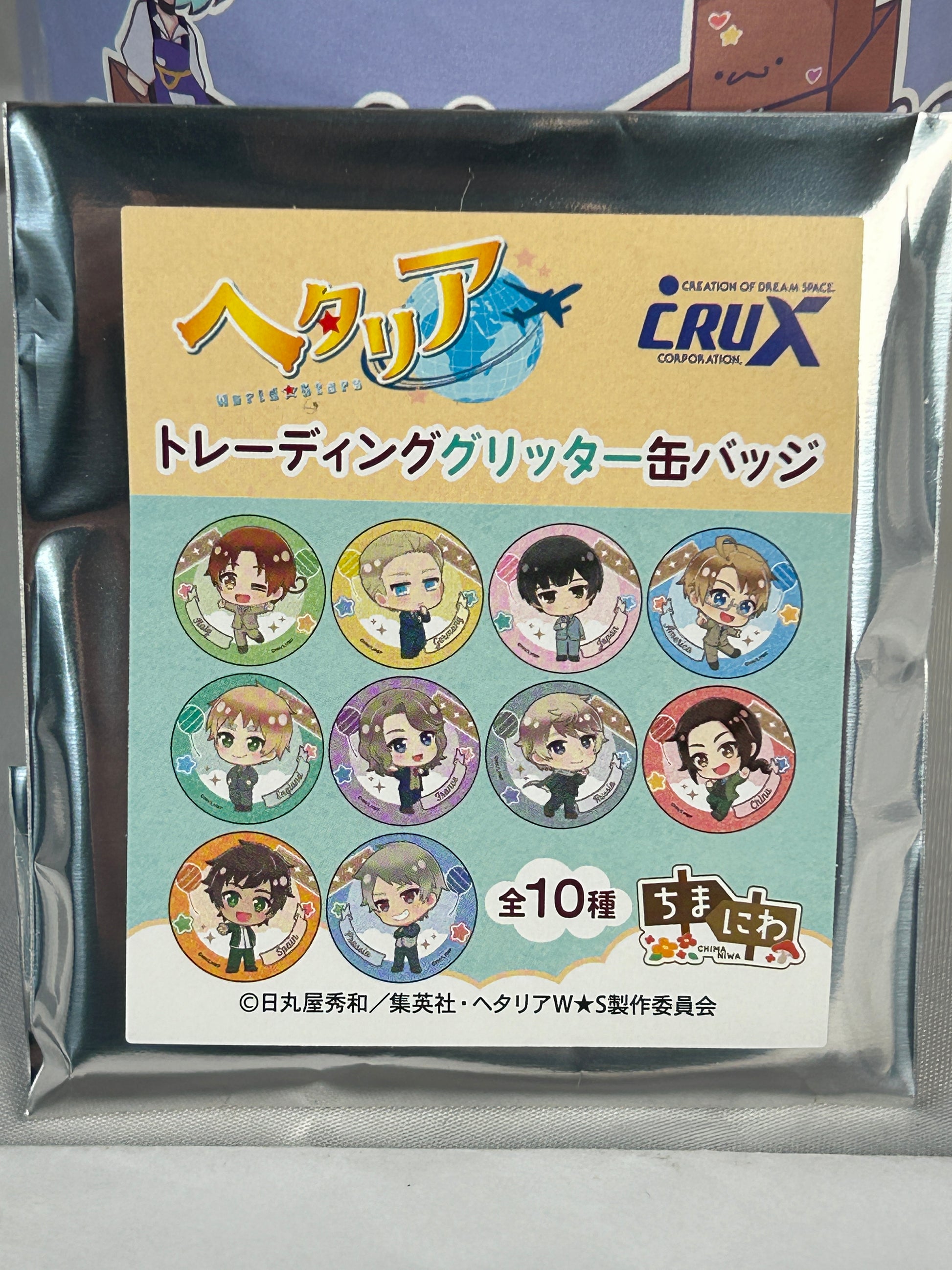 SUGOIII! This America Glitter Button Badge from Hetalia World Stars is super duper cute! :D Featuring the adorable America with sparkly glitter, it's perfect for showing off your love for the series! UwU The vibrant colors and shiny finish make it a must-have for any fan! Owo Pin it on your bag or wear it on your clothes to spread the kawaii vibes everywhere you go! Don't miss out on this precious collectible! :3
